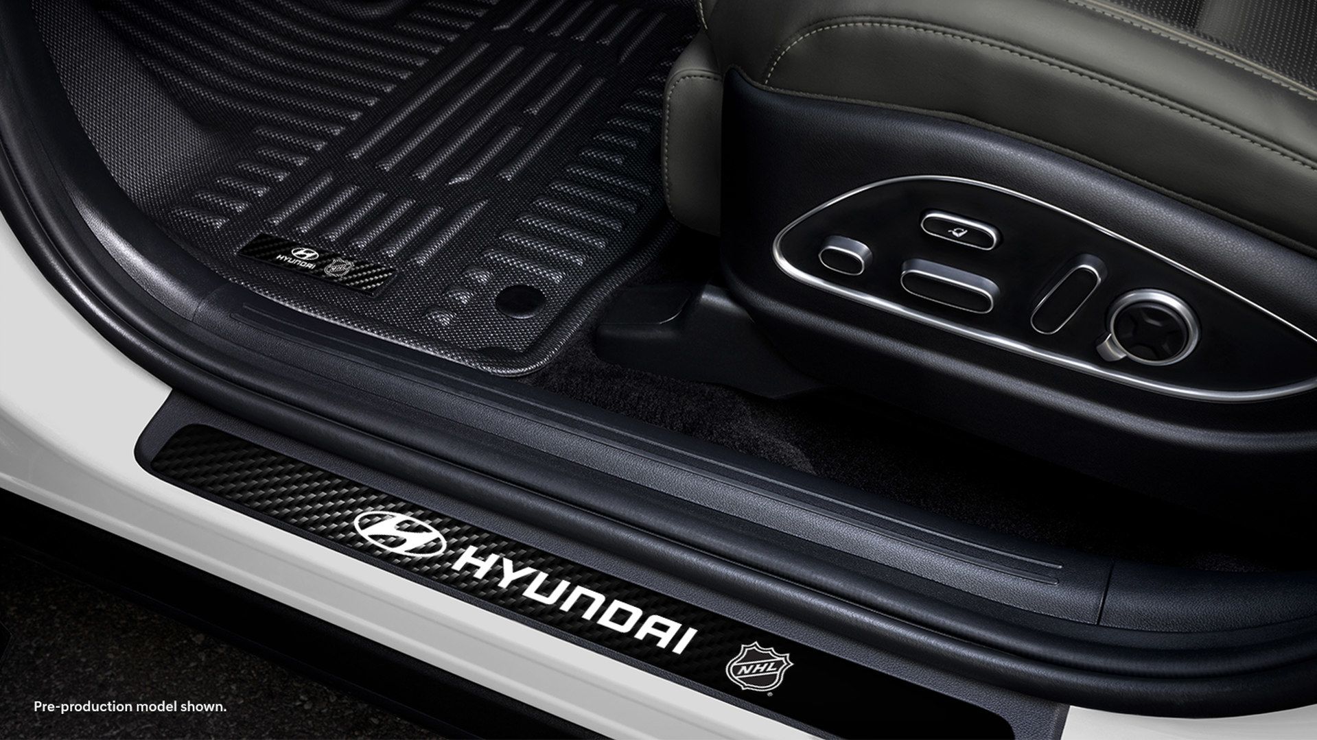 L’édition LNH reprend comme base l’Ultimate Calligraphy hybride, puis ajoute des éléments exclusifs que les amateurs de hockey reconnaîtront instantanément. La peinture extérieure blanc crème mat se démarque par sa prestance inédite dans la gamme Hyundai. À l’intérieur, le cuir Nappa gris charbon crée une ambiance haut de gamme digne d’un véhicule de collection.